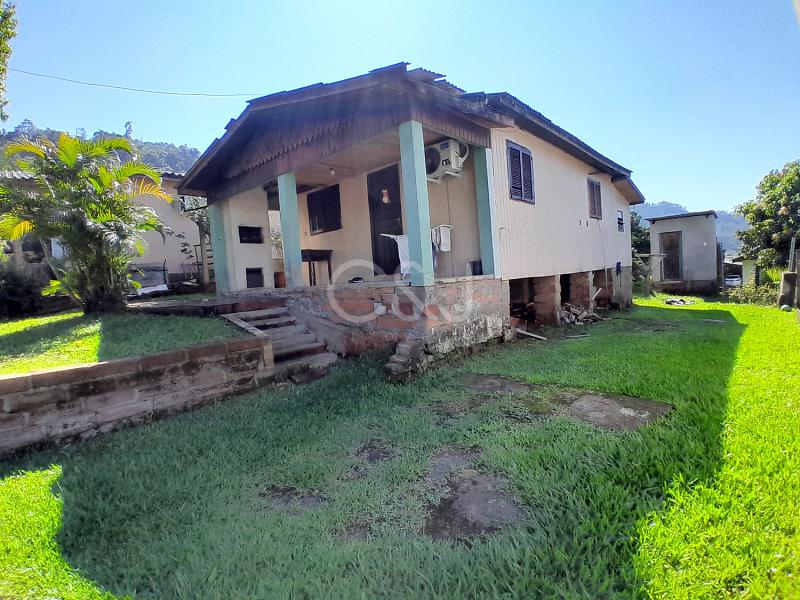 Conta com casa de madeira de aproximadamente 66m², distribuída em: