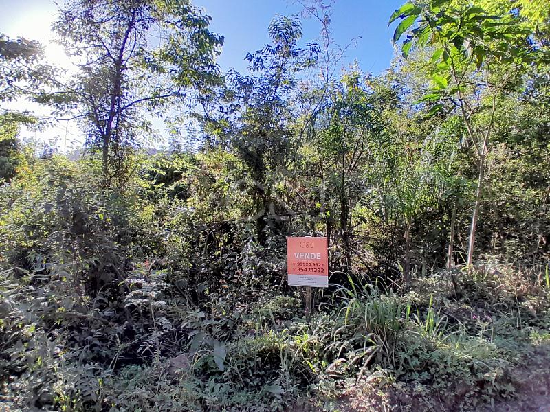 A propriedade possui frente para a estrada e fundos para o rio, com terreno em declive.